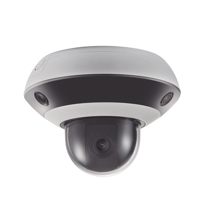 Mini Domo PanoVu 2 Megapixel / 1 PTZ 4X Zoom + 3 Lentes Panorámicos 360° / H.265 / 10 mts IR / Uso en Interior / PoE+ / dWDR / Micro SD