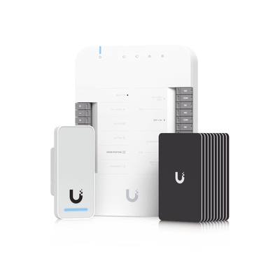 UniFi Access Kit de Inicio Gen 2, Incluye Hub para conexiones, lector NFC y movimiento / 10 tarjetas de acceso / sistema completo para abrir una puerta